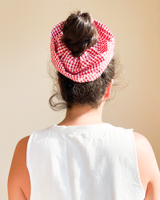 Elástico de cabelo scrunchie maxi xadrez vermelho