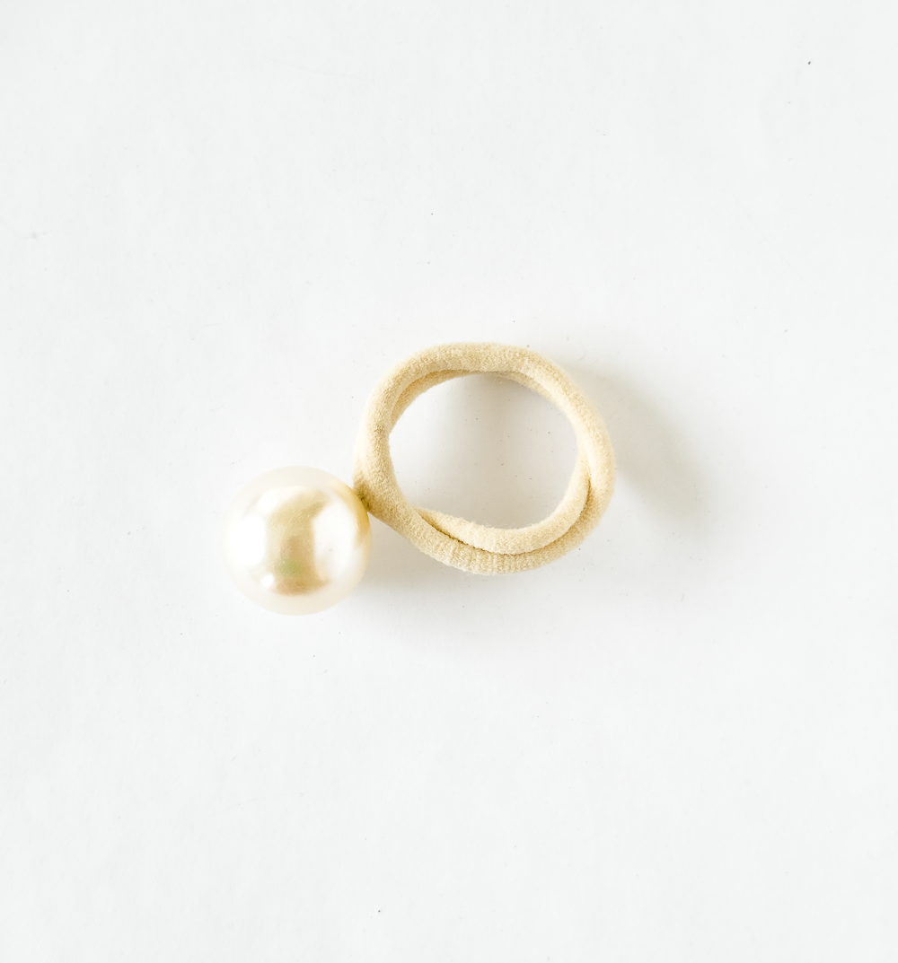 Elástico de cabelo com pérola maxi na ponta. Perfeito pra quem quer manter o rabo de cavalo mas quer sair do básico.