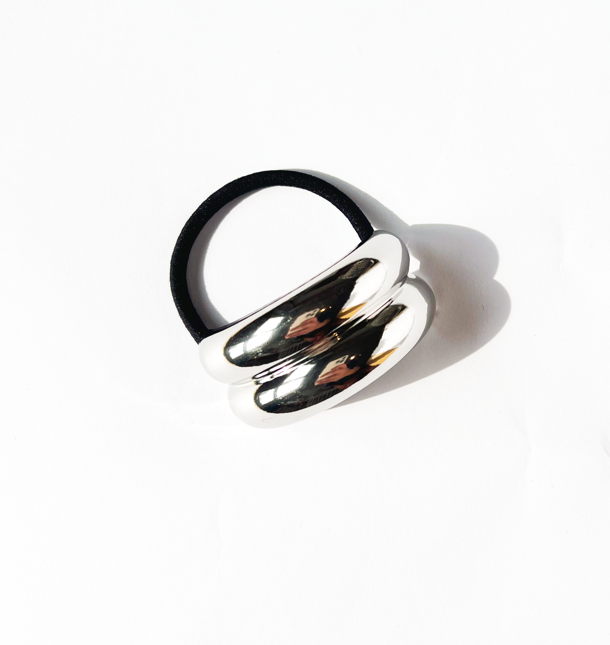 Elástico de cabelo de metal prata. Perfeito pra quem quer manter o rabo de cavalo mas quer sair do básico.