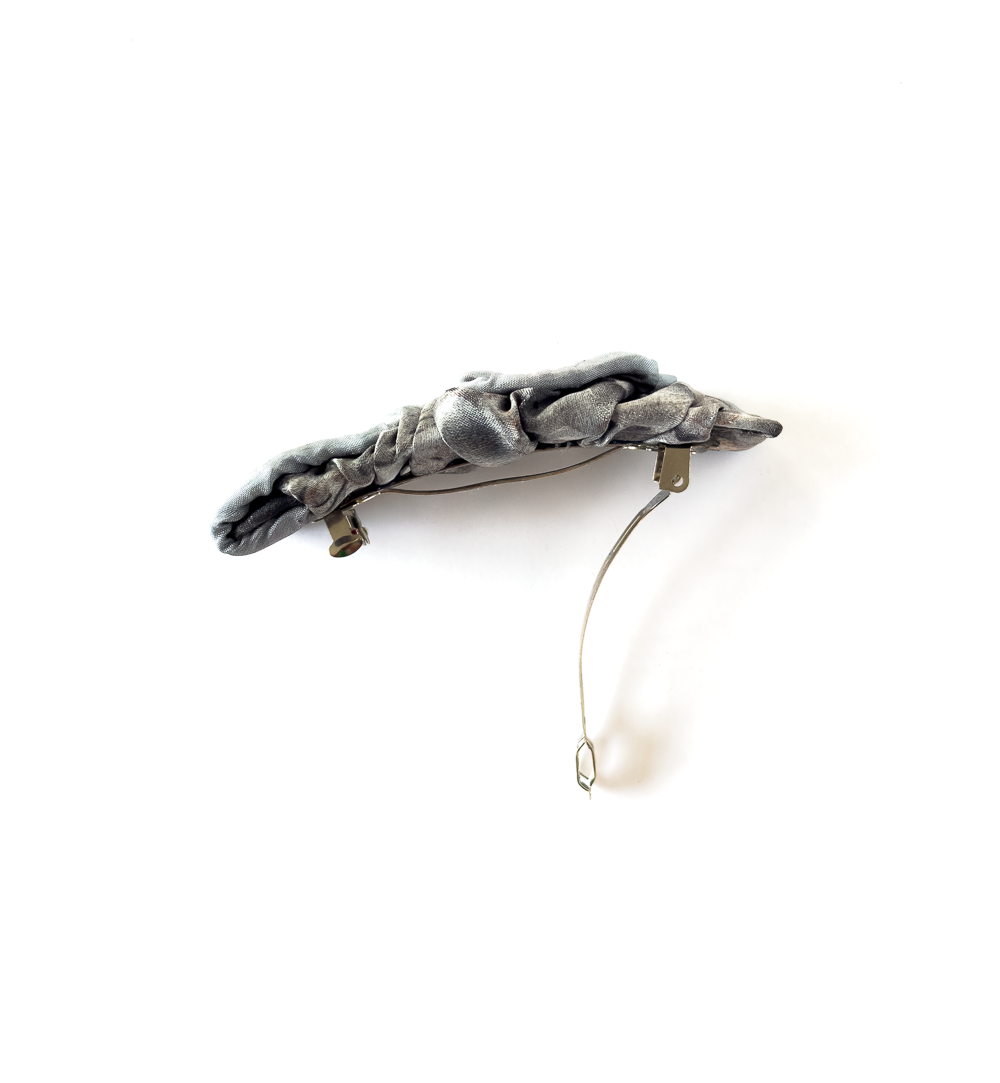 Presilha de cabelo de forrada com tecido vintage e vivo na cor cinza