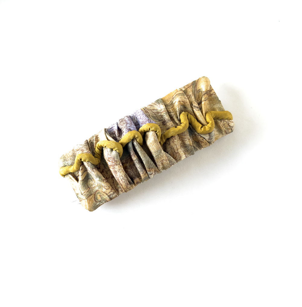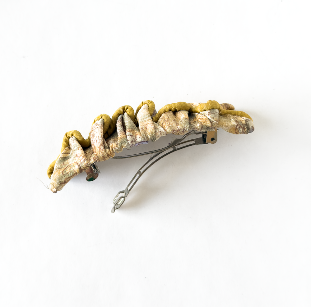 Presilha de cabelo de forrada com tecido vintage e vivo na cor verde